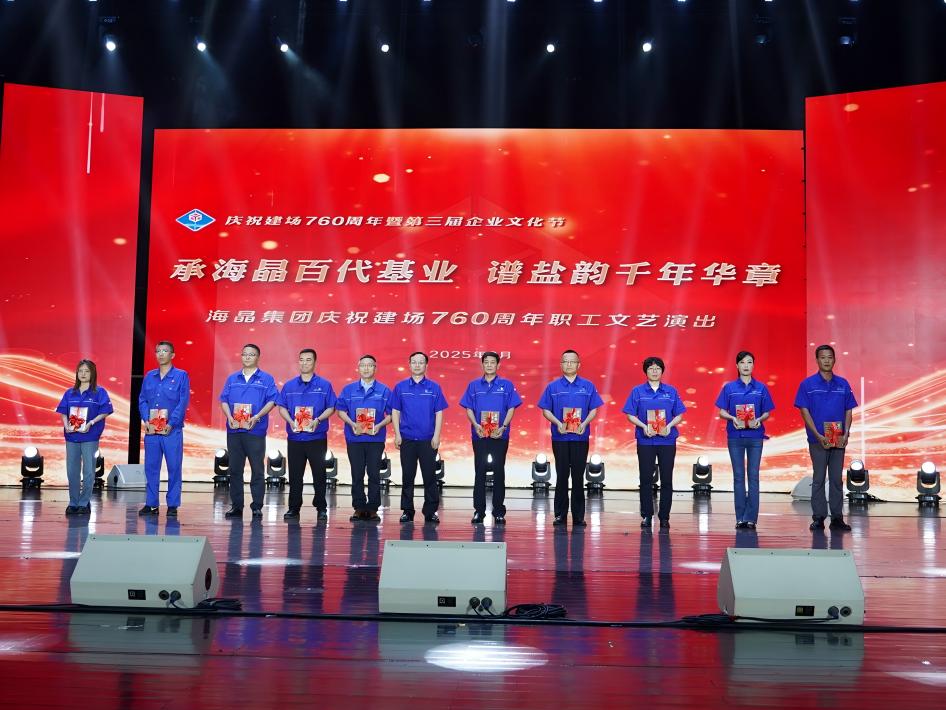 在公司迎來建場760周年的歷史性時(shí)刻,由公司黨委精心策劃并組織編撰的《鹽韻春秋》正式出版發(fā)行。此書是公司黨委深入挖掘千年鹽場文化底蘊(yùn)、賡續(xù)奮斗精神的一項(xiàng)重要文化工程,旨在通過系統(tǒng)梳理公司波瀾壯闊的發(fā)展史詩,激勵(lì)全體海晶人鑒往知來,凝聚起邁向新征程的磅礴力量。《鹽韻春秋》是向公司建場760周年獻(xiàn)上的一份厚禮。9月24日,在公司慶祝建場760周年職工文藝演出上舉行了授書儀式,公司黨委書記、董事長李煥嶺為公司勞模、先進(jìn)工作者等代表授書。